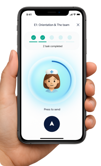 The AI Nurse Companion helps nurses practice German documentation, patient interactions, and cultural scenarios anytime , with instant, personalized feedback that accelerates their progress.